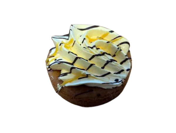 Een wienerbodem royaal opgespoten met crème. Afgewerkt met chocolade en advocaat.