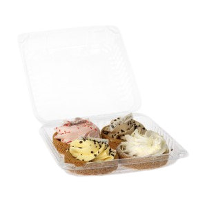 Een wienerbodem royaal opgespoten met crème. In 4 verschillende varianten
