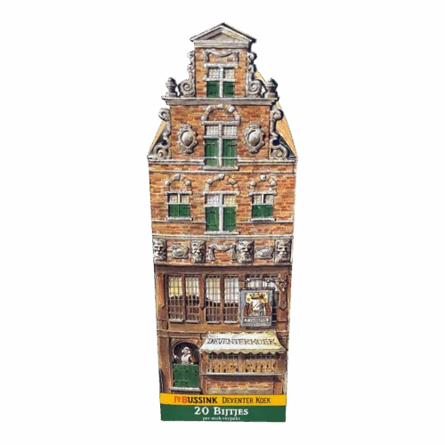 20 apart verpakte stukjes Deventer Koek in een mooie kartonnen geschenkverpakking, totaalgewicht 400 gram.