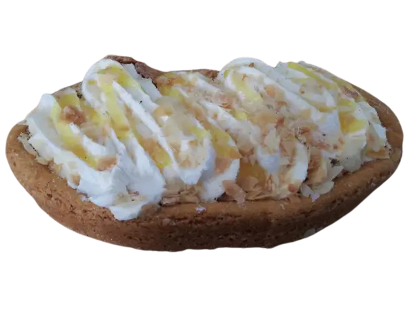 Een slof rijkelijk opgespoten met romige crème. Afgewerkt knapperige victoria en zoetzure lemon curd.
